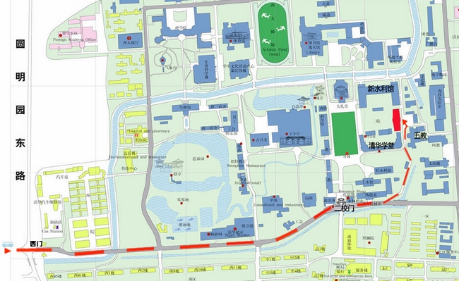 By Taxi: Take taxi directly to West Gate of Tsinghua University, turn east (along the red line), and get down the taxi at the old gate of Tsinghua ("er xiao men" in Chinese pronunciation). Then turn north, walk ten minutes to the Omni Building ("Hong Meng" Building in Chinese pronunciation).