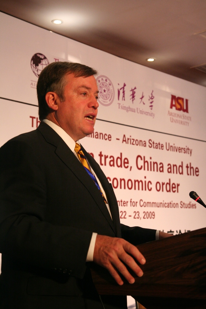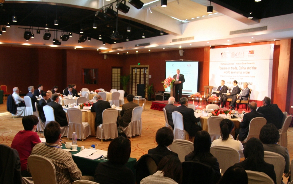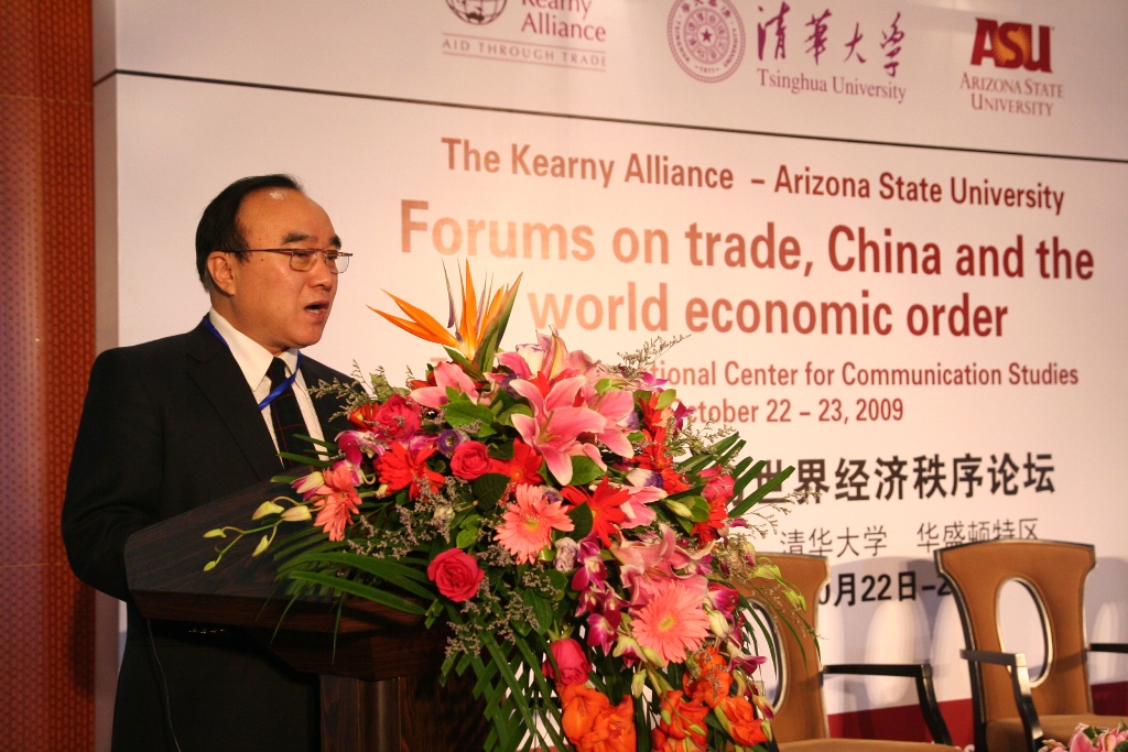 This is the second meeting of three-session forum series on Trade, China and the World Economic Order, sponsored by the Kearny Alliance, Arizona State University and Tsinghua University. Professor Li Xiguang, Executive Dean of the School of Journalism and Communication of Tsinghua, and Michael M. Crow, president of Arizona State University attended the meeting, together with Mr. Merle A. Hinrichs, the president and founder of Global Sources, a leading business-to-business media company focused on global trade.