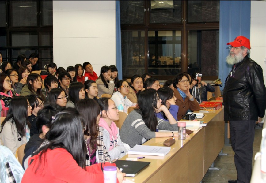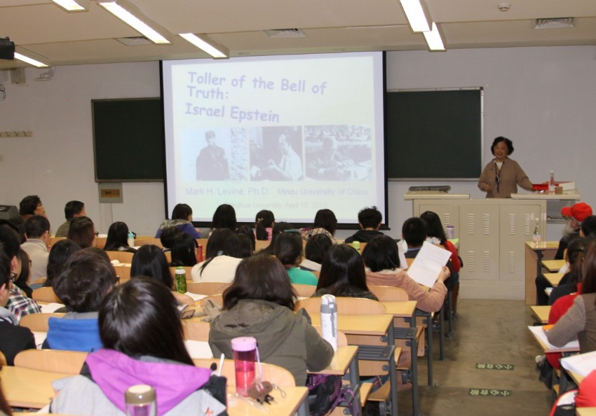 Aihuang Huanbi, wife of Israel Epstein, and Mark Levine, a visiting professor at Minzu University of China, spoke about Epstein, who was a writer, journalist and supporter of Chinese Communism. The lecture was hosted by Professor Anbin Shi.