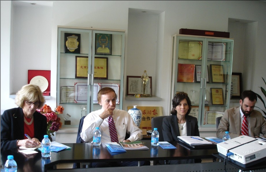 Later that evening, Professor Miller and Professor James Breiner of the Global Business Journalism Program attended a reception for the UNC delegation, the university's alumni, and professors of other universities at the offices of communications firm Burson-Marsteller in downtown Beijing.