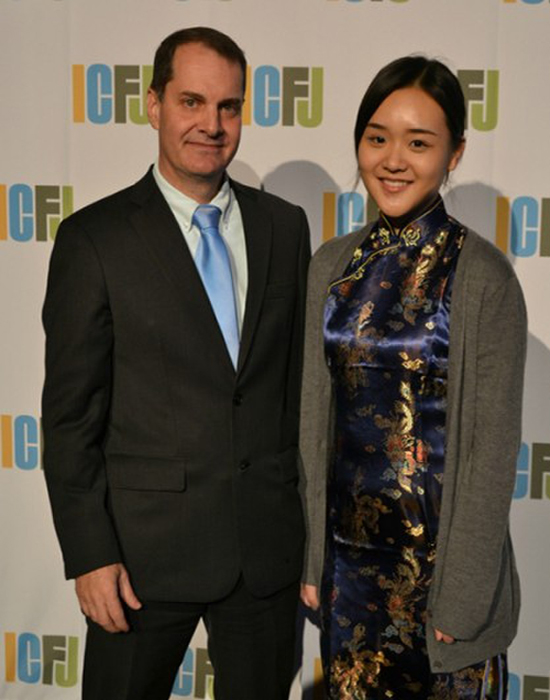 Sihan Zhang, a junior student from School of Journalism and Communication, attended the International Center for Journalists (ICFJ) 2013 Awards Dinner with her Tsinghua University visiting professor, Lee Miller, on Nov.7.