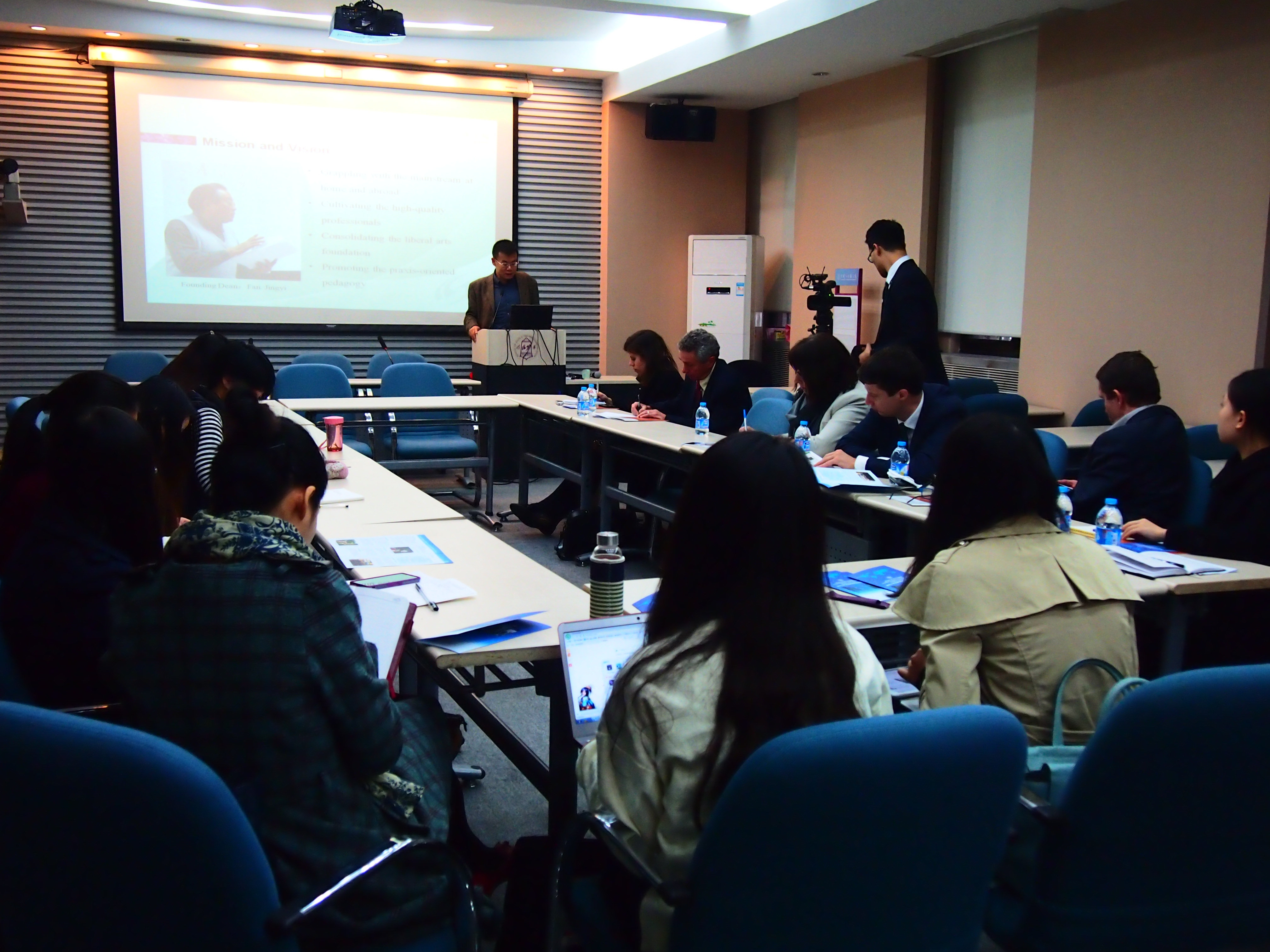 Professor Shi Anbin, Associate Dean of School of Journalism and Communication, hosted the meeting and introduced the history and features of the School of Journalism and Communication in research fields, international outlook and various student activities. Professor Shi also discussed the history of Chinese media development and the globalization of Chinese mainstream publications and agencies.