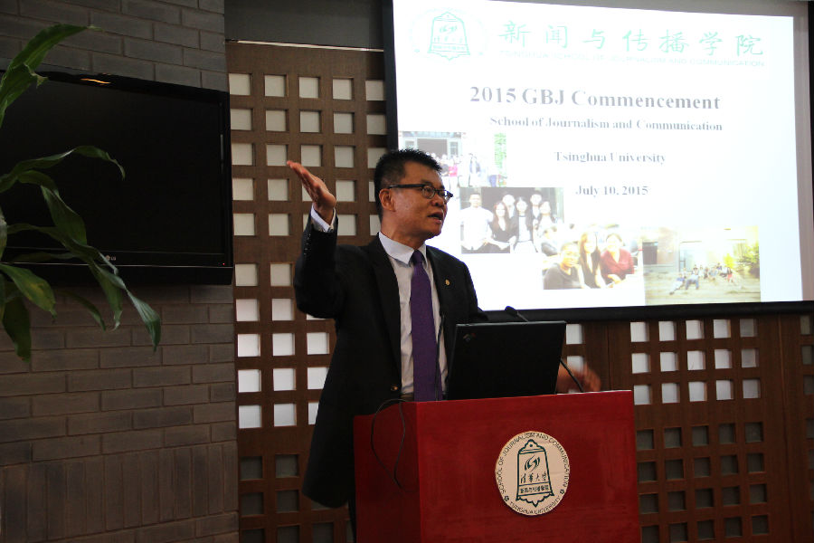 On behalf of the School and in the name of Dean LIU, Binjie(柳斌杰), first of all, I should convey my heartfelt congratulations to the Class of 2015 of the MA program in Global Business Journalism (GBJ), with the School of Journalism and Communication, Tsinghua University (TSJC). Today is your day; you are all the shining super stars!