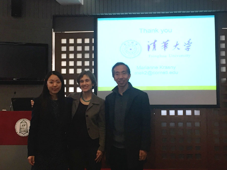 On March 21, 2016, Marianne E. Krasny, a tenured professor in the Department of Natural Resources and the Director of the Civic Ecology Lab at Cornell University, gave a lecture on her experience as an advocator teaching civic ecology courses on edX, one of the main MOOC platforms, in the School of Journalism and Communication in Tsinghua University. Dr. Jin Jianbin hosted the event.