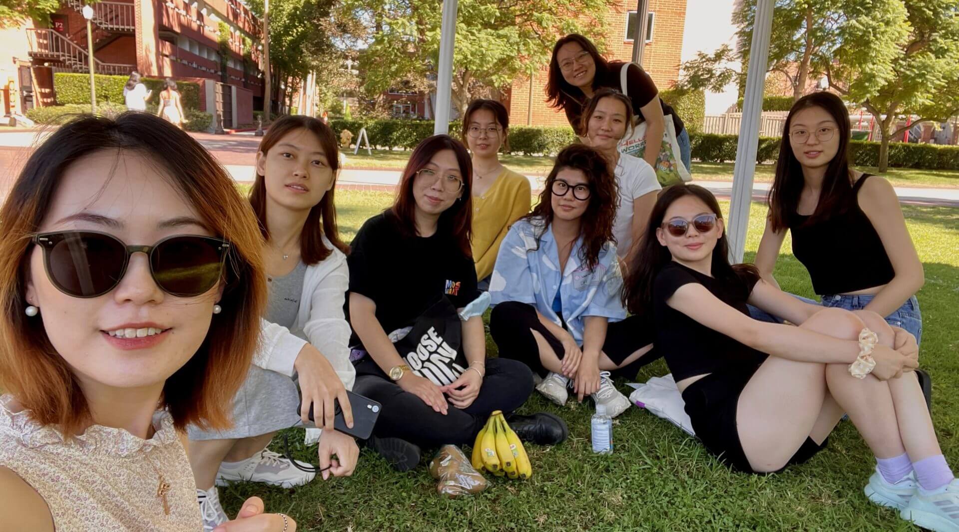 Tsinghua students are joined by program co-director Jessica Neff in Los Angeles.