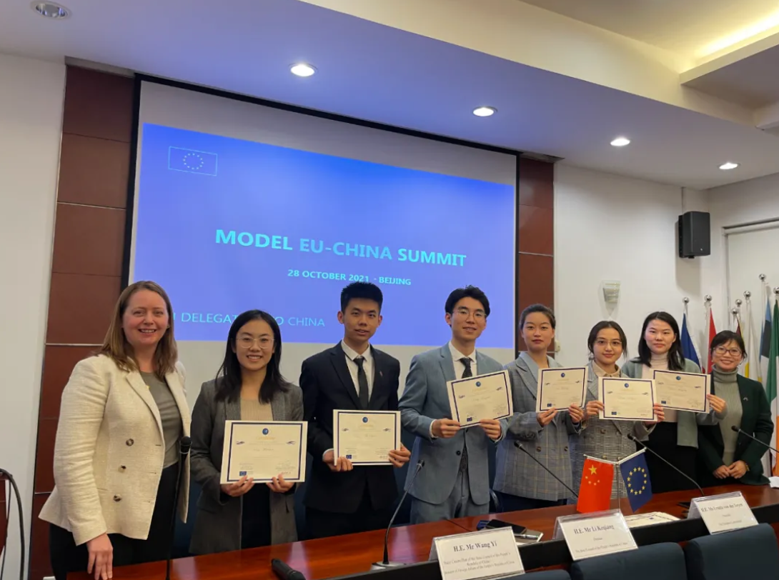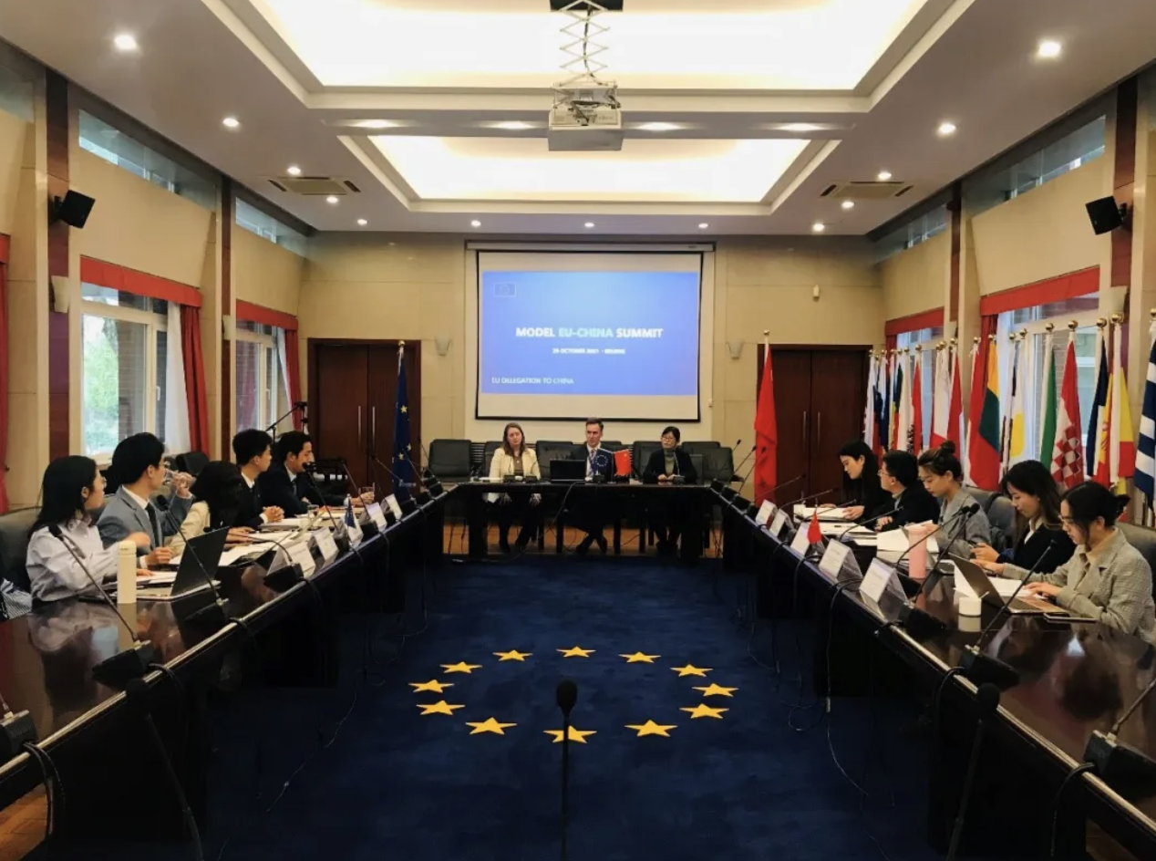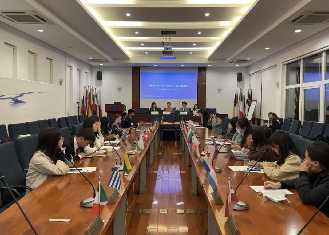 The event was divided into two parts. During the China-EU Summit, ten students played the role of the leaders and diplomats of China and the Europe, and discussed the issues of bilateral relations, economics, environment protection, and sustainable development.