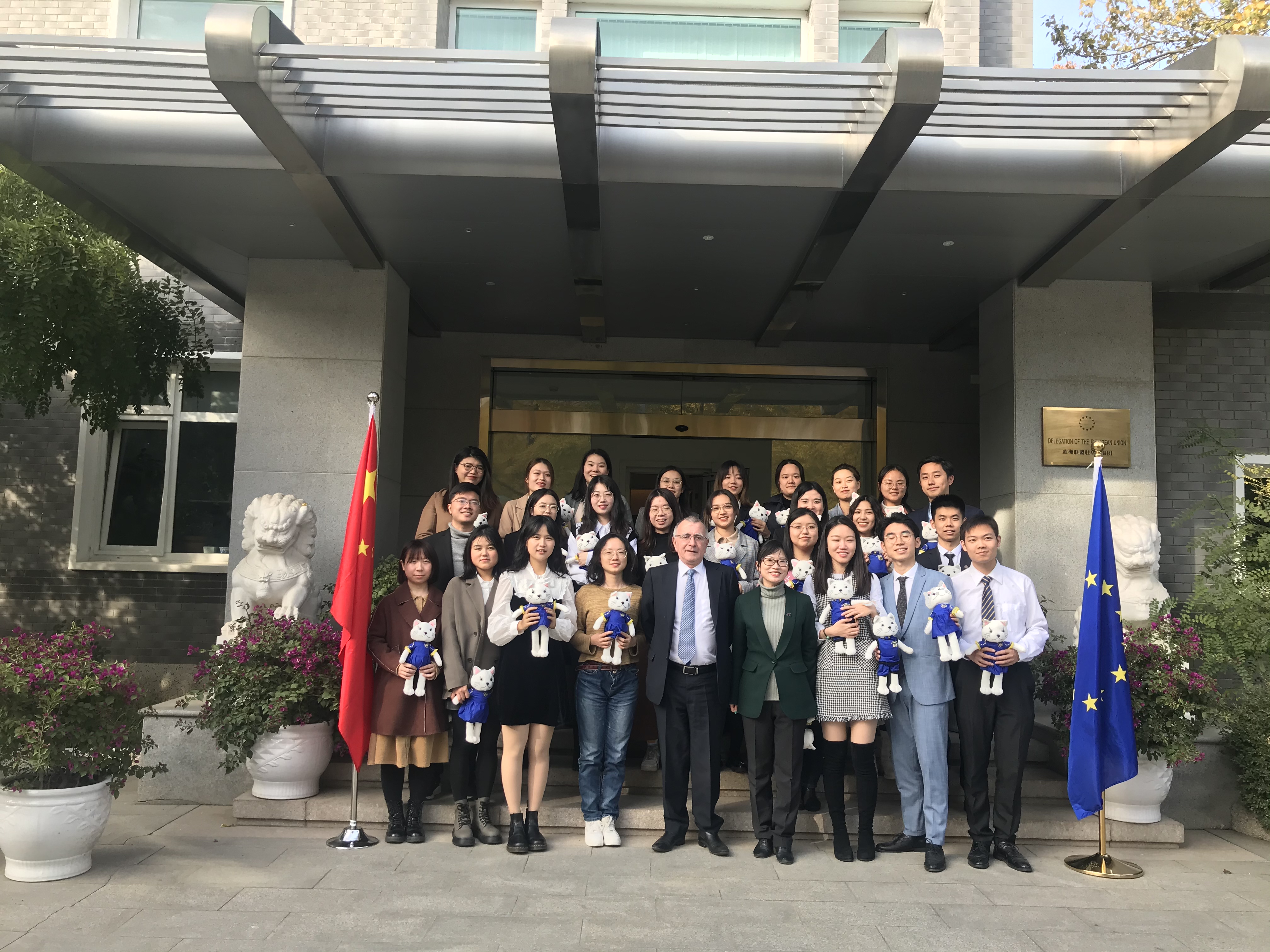 On October 28th, students of Tsinghua University’s School of Journalism and Communication master’s program took a special class “Political Communication: Theory and Practice” with Professor Zhang Li. As part of the class, the students visited the EU Mission in China and participated in Model China-EU Summit and Press Conference. The EU Ambassador to China Mr. Nicolas Chapuis warmly welcomed the students and exchanged his opinions about the prospects and challenges of current China-EU relations with them.