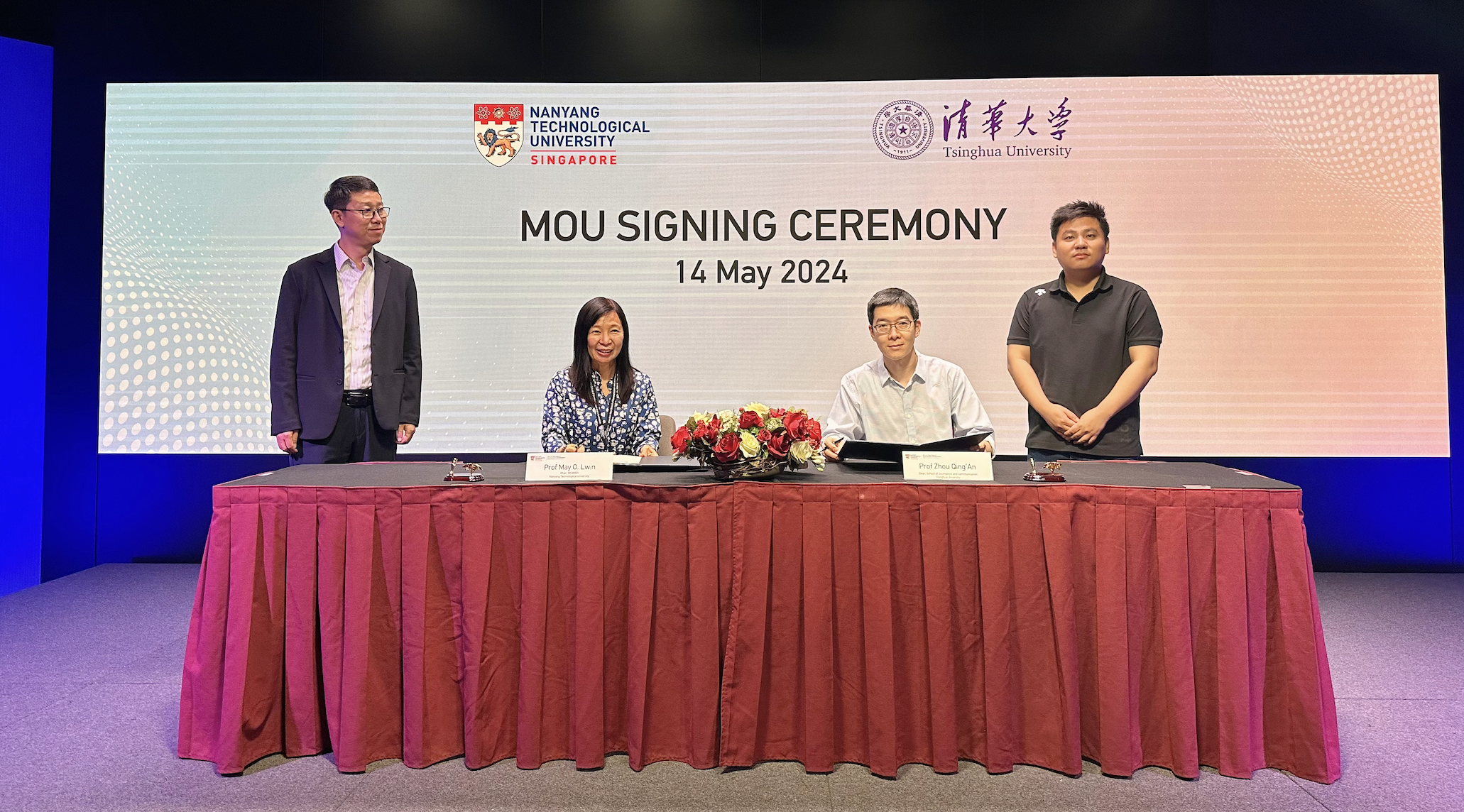 The School of Journalism and Communication of Tsinghua University, China, and the Wee Kim Wee School of Communication and Information (WKWSCI), Nanyang Technological University (NTU), Singapore, have inked a Memorandum of Understanding (MOU) to bolster collaboration in graduate studies through a dual degree programme. The MOU was signed between Prof May Oo Lwin, Chair, WKWSCI and Prof Zhou Qing’an, Dean, School of Journalism and Communication on 14 May 2024. The collaboration paves the way for fruitful exchanges in academic knowledge, cultural understanding, and industry engagement between both schools that include: