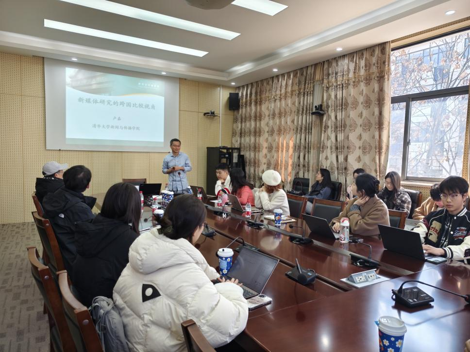 刘子琨老师、慕文龙老师以及近30位师生参加了此次讲座。讲座中,卢嘉教授向在座师生分享了跨国比较视角下新媒体研究的全球视野与在地经验,为跨文化传播研究带来新的思路启发。