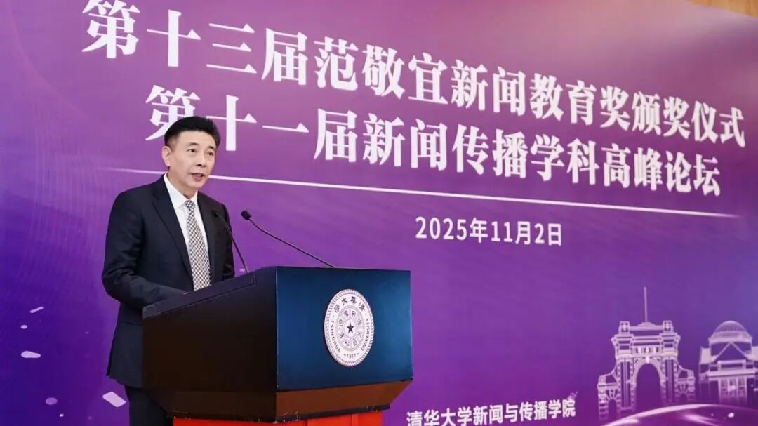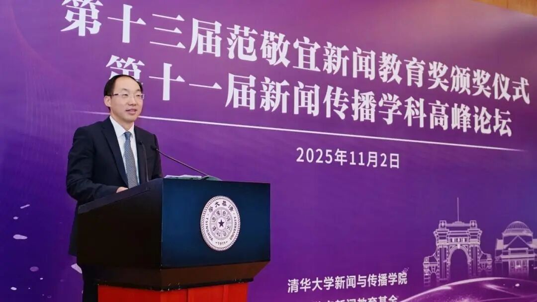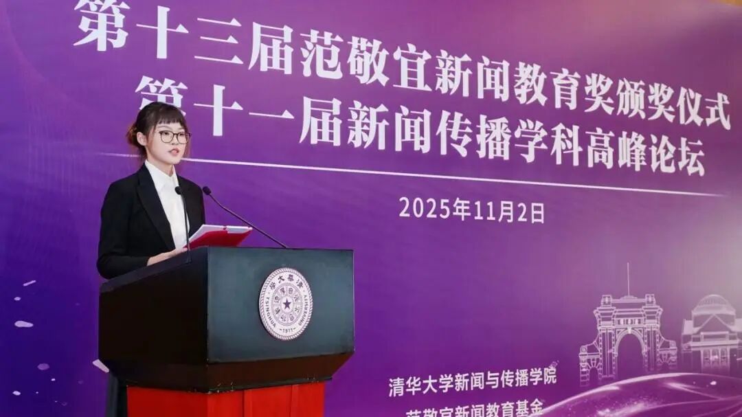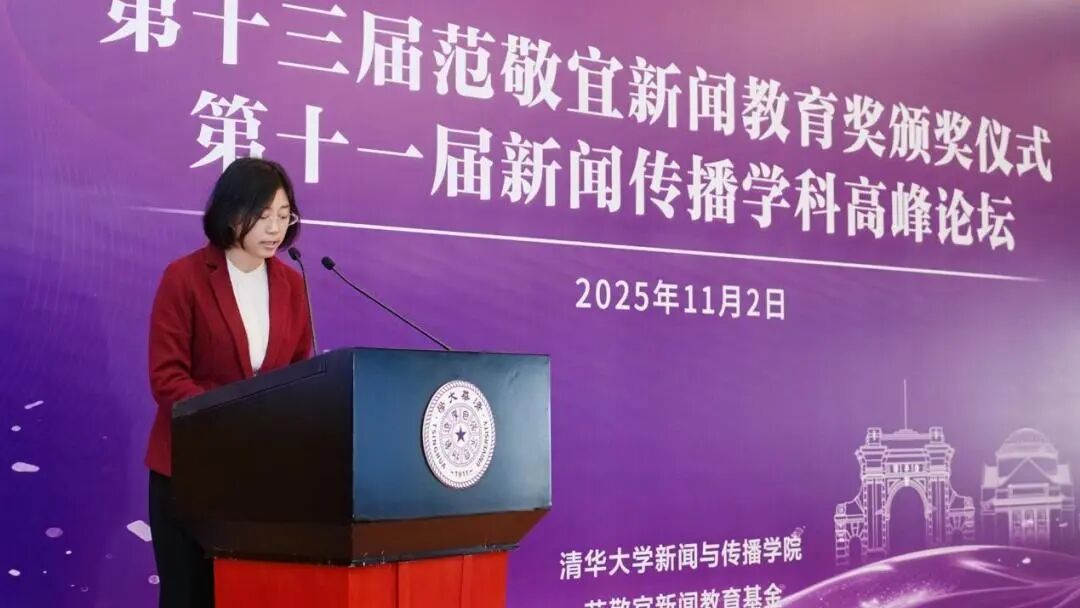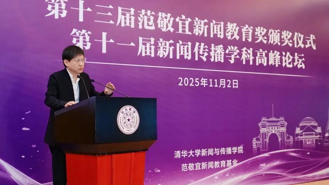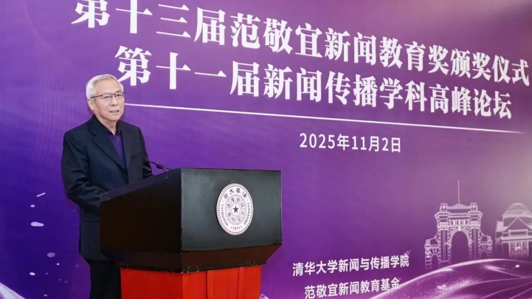 周庆安代表范敬宜新闻教育奖评选组委会汇报评选情况。范敬宜新闻奖包括学子奖、良师奖与良友奖三项。2025年10月15日,黄色在线直播-做爱直播平台