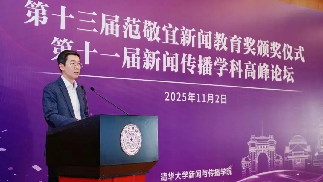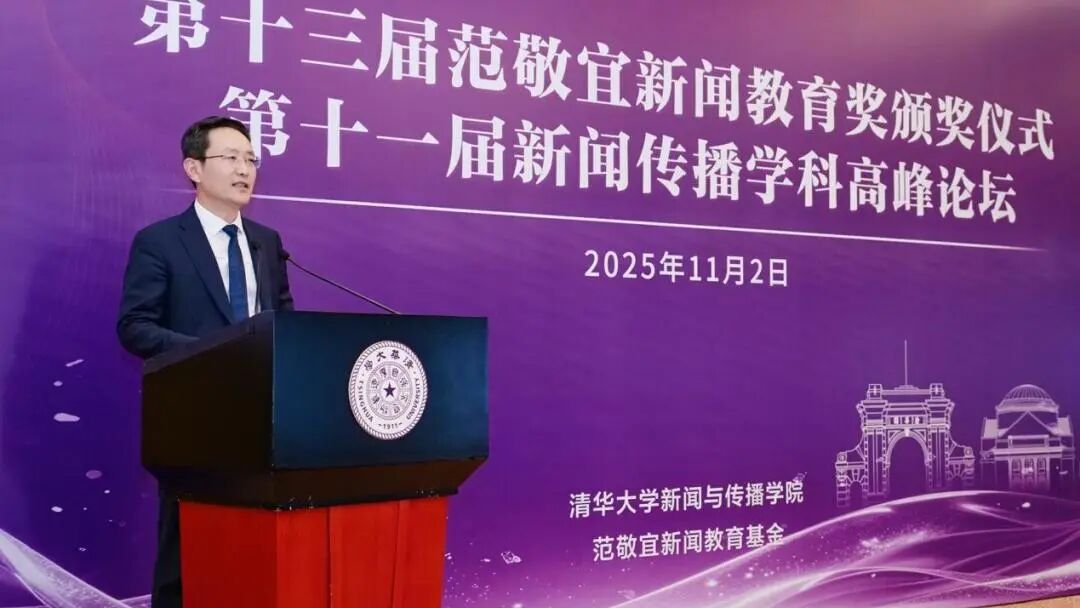 杨宇东作为新闻教育良友奖获得者发言。他深刻剖析了新闻教育面临的行业变革与技术冲击,提出学界业界需深化融合。他强调在技术赋能的同时,新闻教育必须坚守初心,主流媒体应持续提供权威可信的新闻产品。面对行业转型,他呼吁既要培养学生适应变革的创新能力,更要传递新闻理想与职业信念,让年轻一代理解“新闻不仅是历史的底稿,还能够改变历史”的深刻价值,在复杂舆论环境中坚守媒体的社会责任。