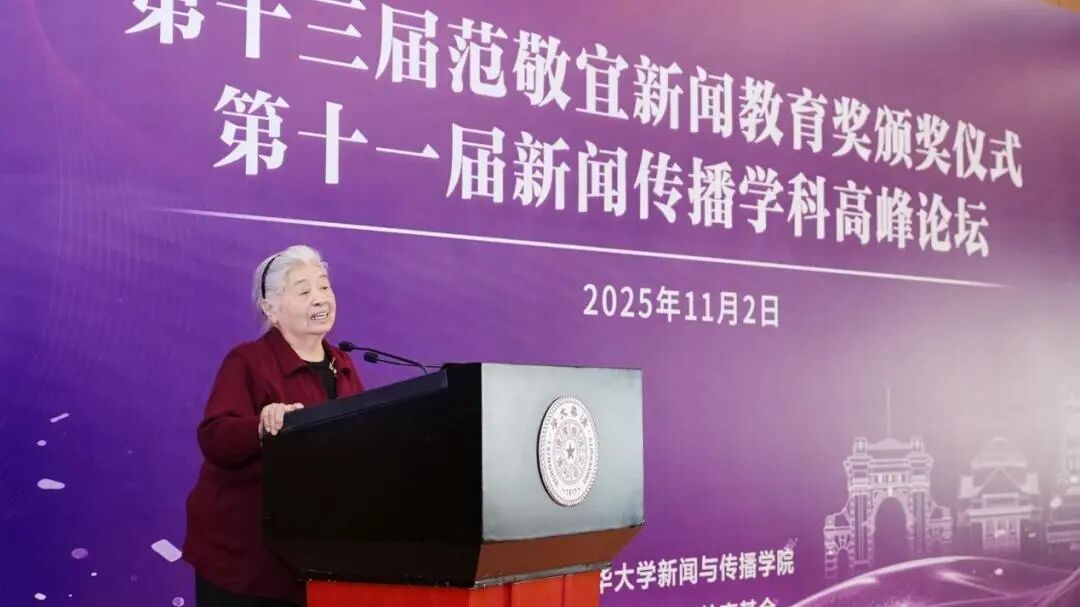 朱羽君、倪宁作为范敬宜新闻教育良师奖获得者发言。朱羽君回顾了与我国电视事业同步的50年教学生涯,从胶片时代到人工智能时代的教学探索。她指出,电视传播技术的每次革新都深刻改变了新闻的表现形态和教育方式。面对人工智能时代的到来,她提出关键思考:新技术在提供知识的同时,能否帮助我们认识人的自我、彰显人的力量?她寄语年轻教育工作者,在智能时代要致力于为新闻传播增添新高度、新温度,让技术真正服务于人的发展和社会进步。